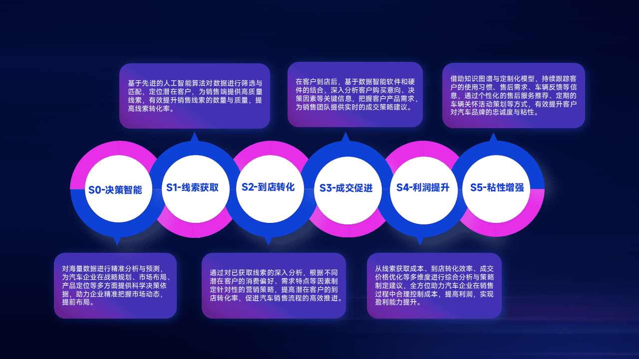 通过拓宽潜在客户来源、、、优化线索分配并提高到店转化率,,,,以增强销售效率。。。同时,,,利用线索数据不断优化分析模型,,,,有效提升转化率,,,扩大营销影响力。。。。
